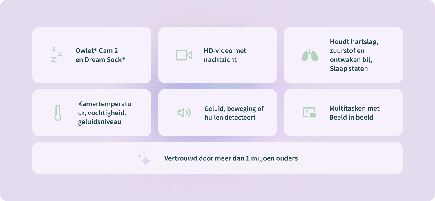 Welkom in een nieuw tijdperk van babyverzorging met medisch gecertificeerde babyfoons die bewaking van medische kwaliteit bij u thuis brengen. Bekijk actuele gezondheidslezingen en ontvang meldingen voor ultieme gemoedsrust.